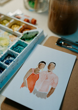 Customized wedding favors, hand painted watercolor portraits of your guests. These paintings are done in the moment with your guests and party, starting during your cocktail hour and completing during the reception. Paintings are 4x6 inches on watercolor paper with a general sketch and watercolor paint. Give your guests something to never forget from your special day.